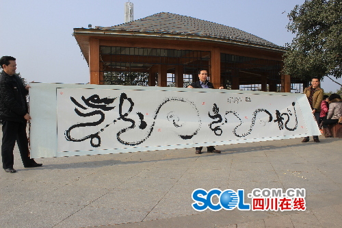 有幸看到书法家王友生先生先生挥毫泼墨书写象形草榜大“龙”字,令我大开眼界。2008年八月,笔者在上海国际艺术博览会,到场的一百八十位书画家每人都在我们准备的折叠长册中定下了一个个“龙”字,真可谓琳琅满目,异彩纷呈。但没有见到这么大的用象形草榜字体书写的“龙”字。