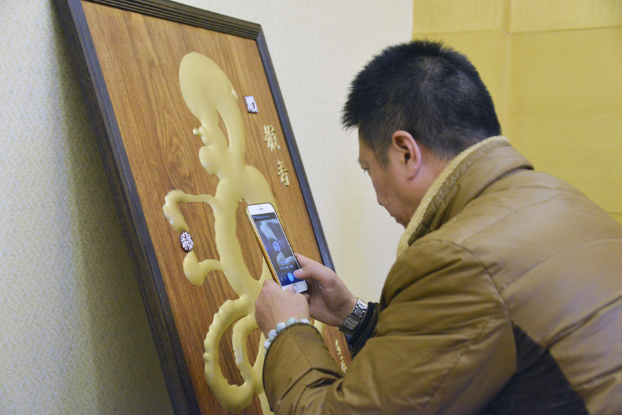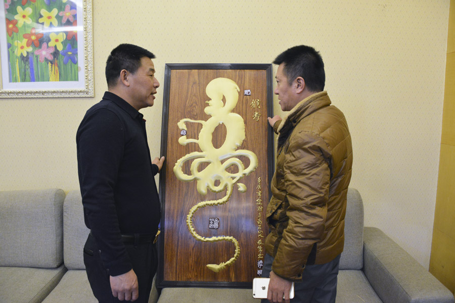最近,南部县《猴寿》书画创作人王友生,手捧广东胡强总经理赠送的红木雕刻作品《猴寿》大扁,到场祝贺的有县政协老领导向维智、宣传部老领导雍晓升、摄影家协会副主席阳仕茂等11位艺术界人士参加,并听取了王友生创作经历和胡强雕刻工艺流程介绍。